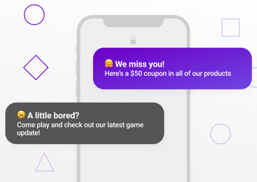 Offering discounts that are tailored to a user’s interests and/or buying history encourages repeat purchases, like a travel booking app offering 20% off hotels in a particular city after a user books a flight there.